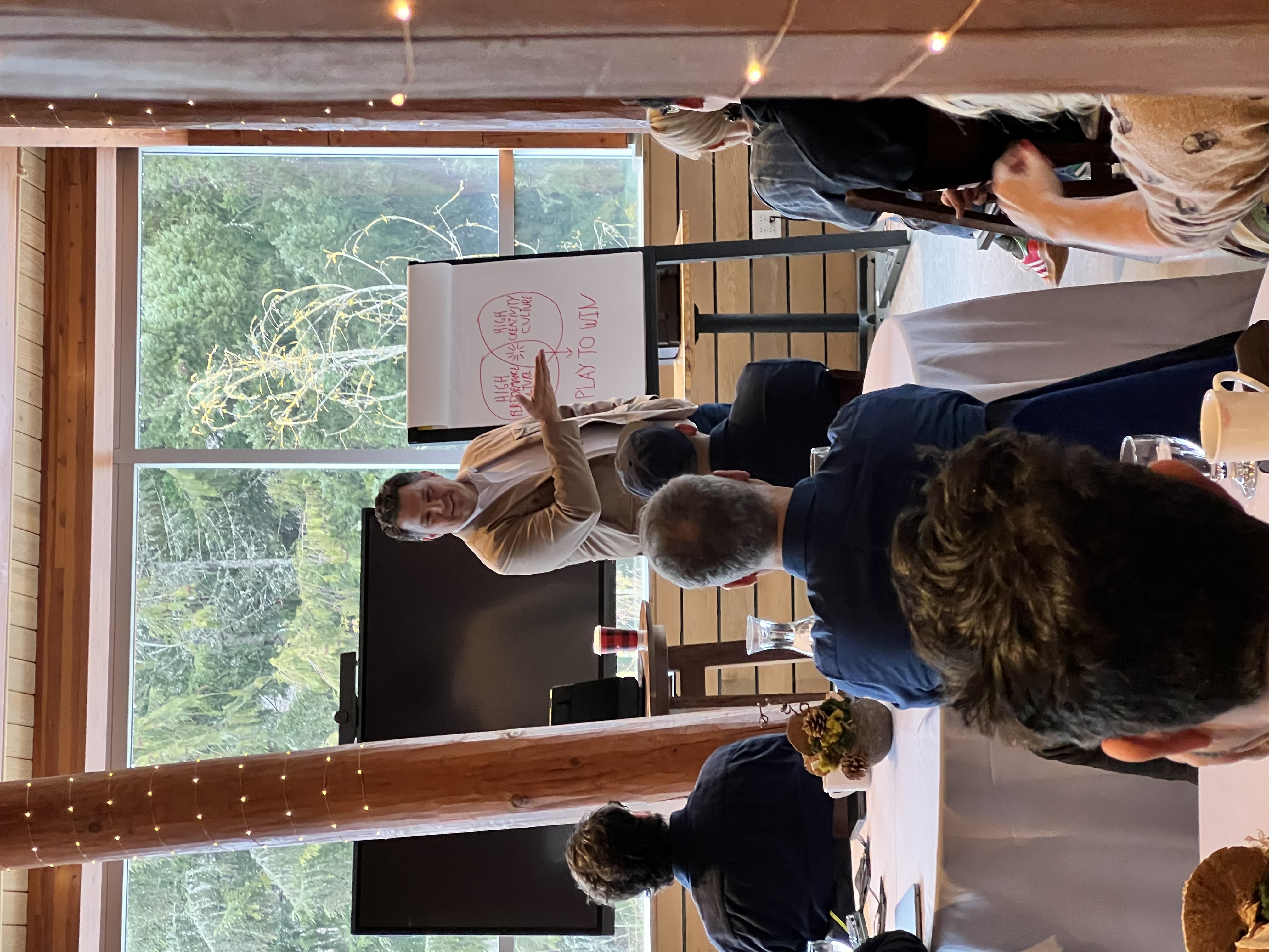 Dr. J speaking to the leadership of Global advertising company 72 and sunny in whistler, canada
